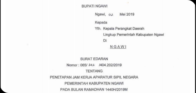 Selengkapnya, Berikut Ketentuan Jam Kerja ASN di Lingkup Pemkab Ngawi Selama Bulan Ramadhan 1440 H,