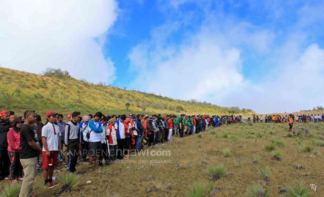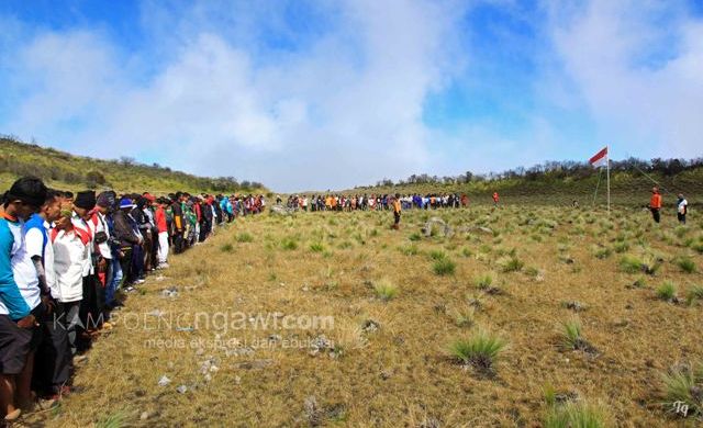 Upacara bendera diikuti oleh ratusan pendaki. Selain upacara bendera momen hari kemerdekaan ini juga dimanfaatkan untuk kembali mengingatkan akan pentingnya menjaga kebersihan alam terutama di Gunung Lawu ini. Pendaki diajak melakukan bersih-bersih di puncak Gunung Lawu dan sepanjang jalur pendakian. Selain itu, dimanfaatkan para pendaki untuk saling bersilaturahmi antar pendaki dan bertukar cerita atau pengalaman.