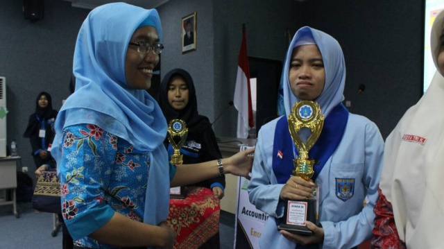 Minda Yustrina Devi, Juara 3 Accounting Smart Olympiade 2017. Perjuangan yang sungguh – sungguh pastinya akan membuahkan hasil. Meski menempati urutan ketiga namun ini merupakan sebuah kebanggaan tersendiri baginya. Nampak matanya berkaca – kaca saat menerima hadiah berupa trophy dan uang pembinaan dari pimpinan Jurusan Komputer Akuntansi Politeknik Negeri Madiun.
