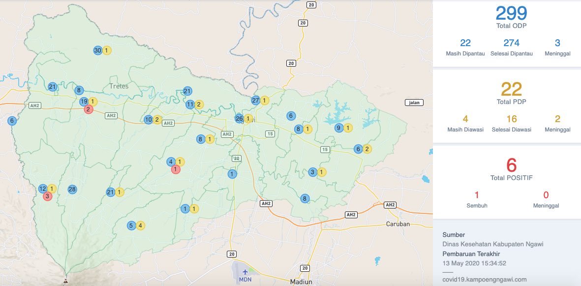 Sebagaimana disampaikan oleh Dinas Kesehatan (Dinkes) kabupaten Ngawi, 4 ODP baru tersebut rinciannya adalah dari wilayah kerja puskesmas Ngawi Purba sebanyak 2 orang, puskesmas Paron 1 orang, dan 1 orang dari wilayah kerja puskesmas Mantingan.