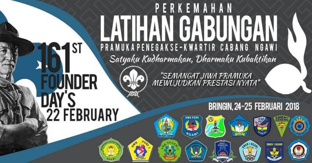 NGAWI – Seluruh Dewan Ambalan (baca: pengurus) Pramuka tingkatan Penegak (usia 16-20 tahun) mengagendakan Latihan Gabungan dalam rangka memperingati Hari Lahir Baden Powell (Founders Day) ke 161 yang jatuh pada tanggal 22 Februari.
