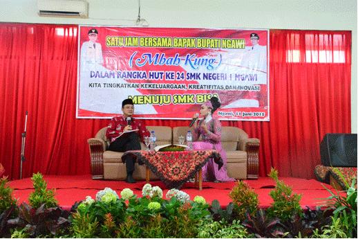 Dalam memperingati HUT SMKN 1 Ngawi ke 24, SMKN 1 Ngawi adakan Talk Show bersama Bupati Ngawi untuk meningkatkan motivasi dan mengembangkan inspirasi siswa yang dilakukan di ruang pertemuan SMKN 1 Ngawi pada kamis pagi 11/06/2015. Kegiatan ini juga dihadiri Sekretaris daerah Ngawi Siswanto,kepala Dinas Pendidikan Abimanyu dan para guru di lingkup SMKN 1 Ngawi.