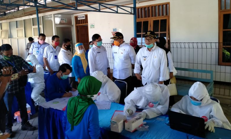 Nampak beberapa pejabat seperti Bupati, Wakil Bupati, dan Kepala Dinas Kesehatan Ngawi turut memantau jalannya proses rapid test di PT. Dadi Mulyo Sejati (MPS) kemarin.