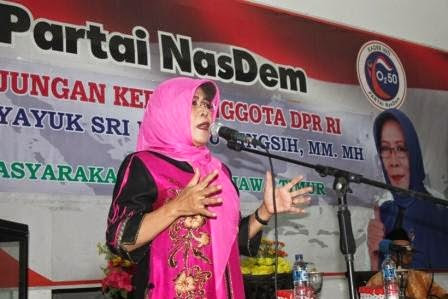 Politisi Nasdem Yayuk Sri Rahayu Ningsih saat reses di daerah tengah kebanjiran atensi dan harapan dari para konstituen. Yayuk sapaan akrabnya dari Komisi IX DPR RI saat menjumpai ratusan konstituen di kantor DPD Partai Nasdem Kabupaten Ngawi, Jawa Timur, mengemukakan sebagai wakil rakyat tentunya sadar dijadikan tumpuan terhadap problematika di daerah. Yayuk Janjikan UU Perlindungan TKI Masuk Prolegnas.